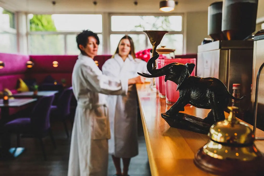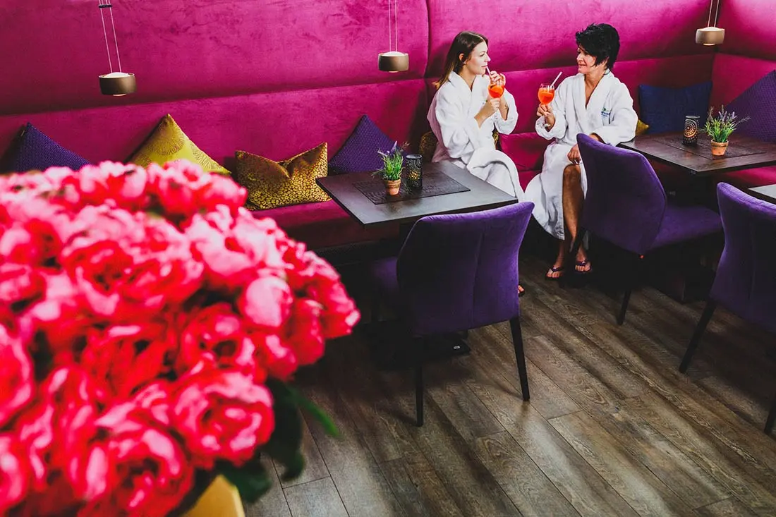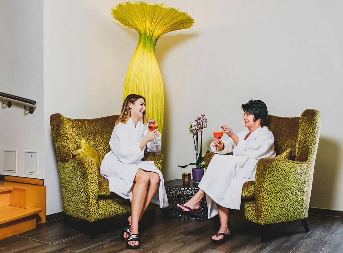 Erholung pur bietet Ihnen eine Rundbogensauna, ein klassisches Caldarium, eine Außensauna und der großzügig angelegte Ruhebereich mit seinem geschmackvollen, erlesenen Interieur. Kleine, leichte Snacks und erfrischende Getränke im Bistro runden Ihre Ruhepause in behaglicher Atmosphäre ab.