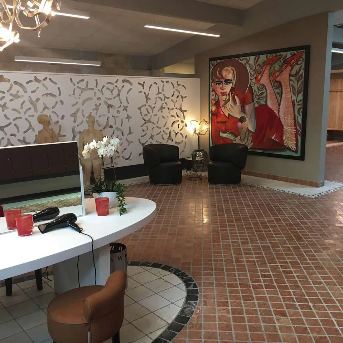 Für die Besucherinnen im „Mona Lisa“ besteht der direkte Zugang zu den Kosmetik- und Massagebereichen auf gleicher Ebene und zu allen übrigen Einrichtungen im „Sauna Paradies Wettenberg“.